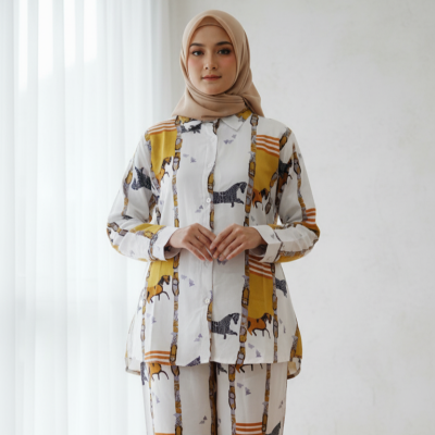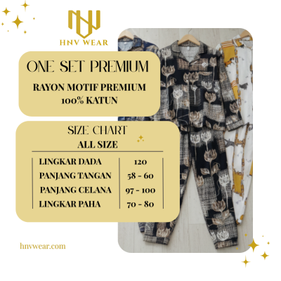 INVESTASI KENYAMANAN DENGAN SENTUHAN ELEGAN. HNV Wear Mempersembahkan One Set Rayon Motif, Pilihan Sempurna Untuk Anda Yang Mengutamakan Kenyamanan premium Di Rumah Maupun Saat hangout Santai. Dibuat Dari Rayon Motif Premium Cotton 100%, Material Ini Menjanjikan Tekstur Yang Sangat Lembut, Dingin Di Kulit, Dan Jatuh Dengan Indah Saat Dikenakan. Setiap Detailnya Dirancang Untuk Kesempurnaan: Potongan Longgar (LD 120) Yang stylish Dan Tidak Membatasi Gerak, kancing Depan Penuh Yang Fungsional, Dan lengan Panjang Bermanset Kancing Untuk Tampilan Yang Rapi. Ini Adalah set Yang Akan Membuat Anda Merasa Nyaman Dan Percaya Diri Secara Bersamaan.